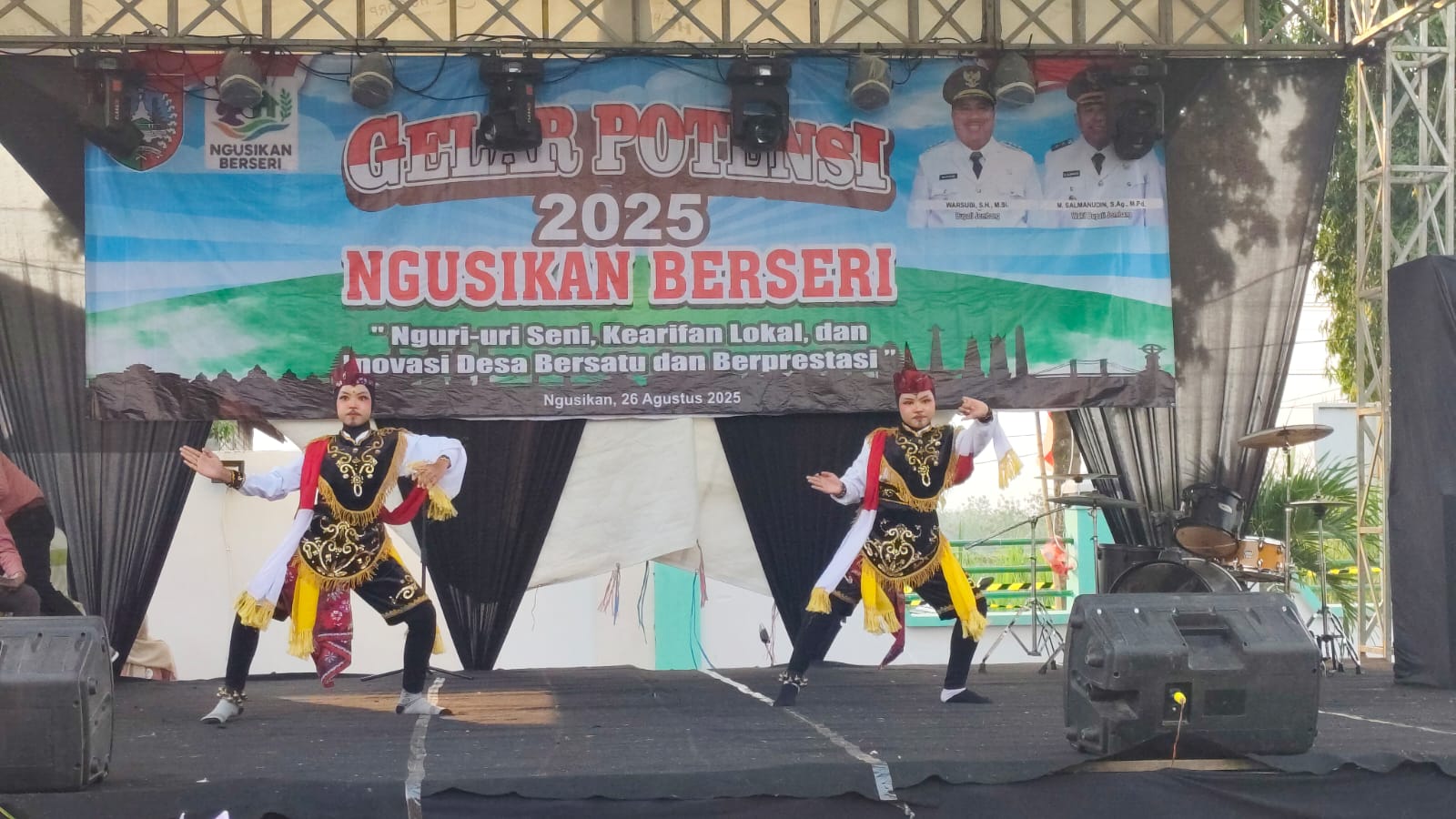 Ngusikan – MTsN 5 Jombang turut berpartisipasi dalam Gelar Potensi Kecamatan Ngusikan yang digelar pada Selasa, 26 Agustus 2025. Tahun ini, kegiatan mengusung tema “NGUSIKAN BERSERI (Nguri-uri Seni Kearifan Lokal, dan Inovasi Desa Bersatu dan Berprestasi)”, yang bertujuan untuk menumbuhkan kecintaan masyarakat terhadap seni, budaya, serta potensi lokal.
