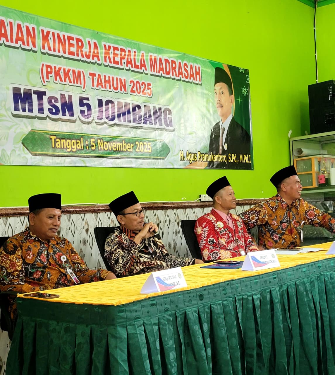 Jombang, 5 November 2025 — MTsN 5 Jombang melaksanakan kegiatan Penilaian Kinerja Kepala Madrasah (PKKM) tahunan pada hari Rabu, 5 November 2025. Kegiatan ini merupakan agenda rutin yang bertujuan untuk menilai kinerja kepala madrasah dalam menjalankan tugas manajerial, pengembangan madrasah, dan peningkatan mutu pendidikan.