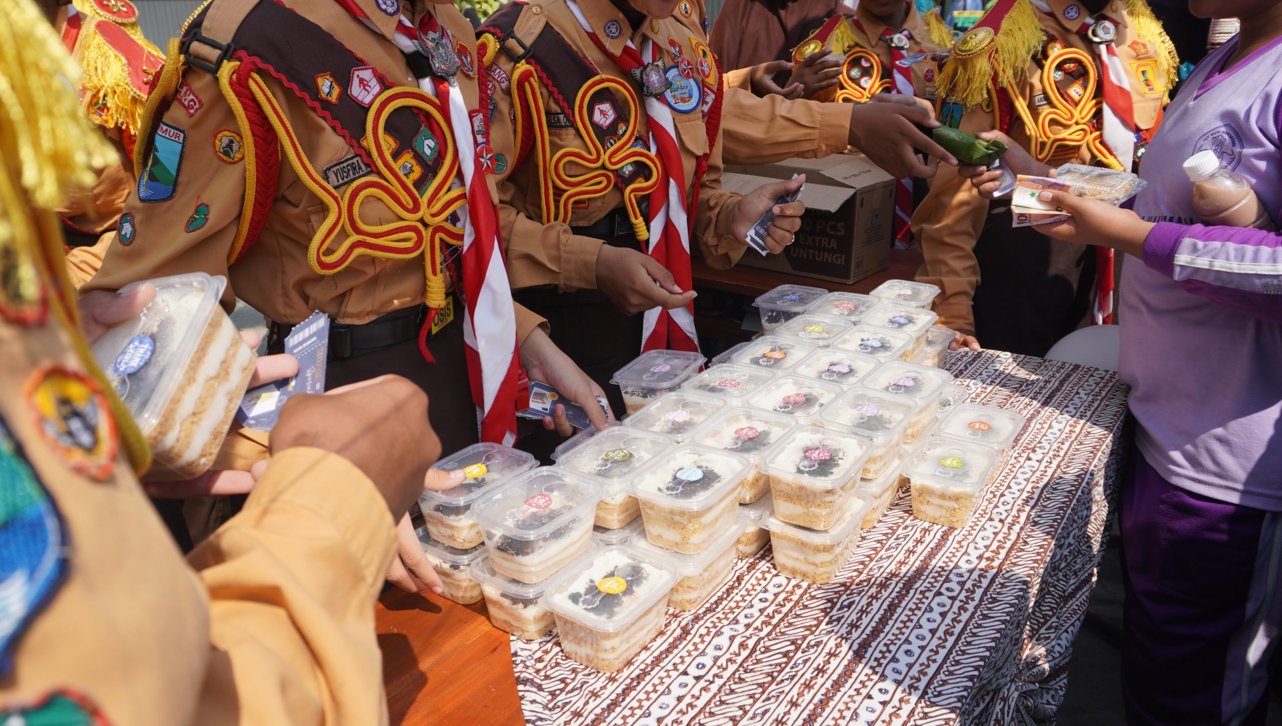 - Anggota Pramuka unjuk keterampilan baris-berbaris yang tegas serta demonstrasi tali-temali dan pertolongan pertama, mencerminkan nilai-nilai kemandirian dan kepemimpinan.